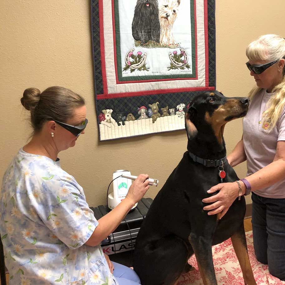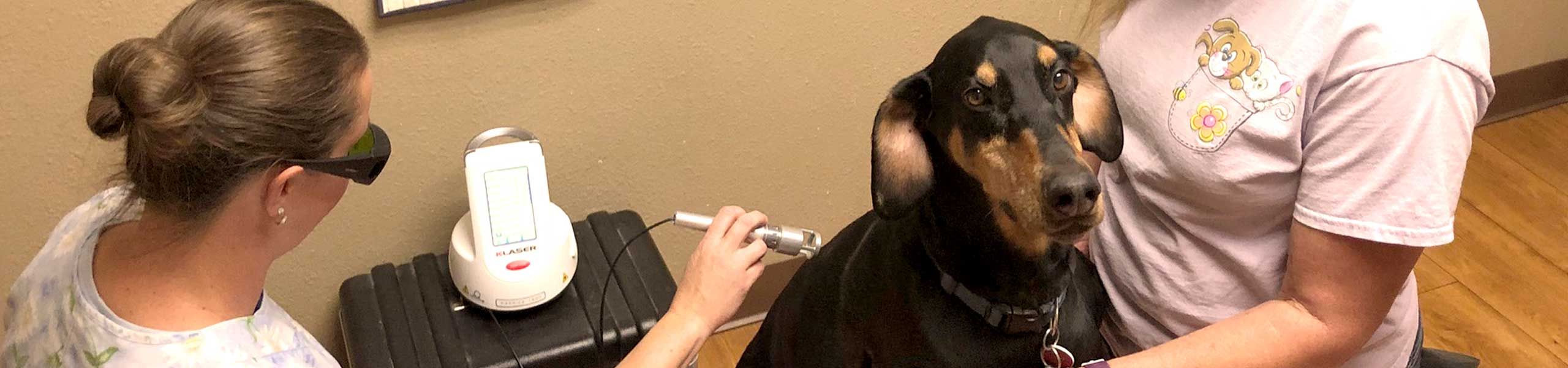 We are extremely excited to announce the introduction of Laser Therapy into our clinic! Laser Therapy (also known as Photobiomodulation) is a state-of-the-art, painless, drug-free, and non-surgical treatment for an extremely vast variety of medical conditions. The biological effects of therapeutic laser in the body include reducing inflammation and pain, increased tissue repair and cell growth, improved blood flow and nerve function, immunoregulation and faster wound healing. The laser provides treatment for arthritis, improves healing of surgical incisions, acute or chronic wounds, dental disease, ear infections, hot spots, sports injuries and MANY other conditions.